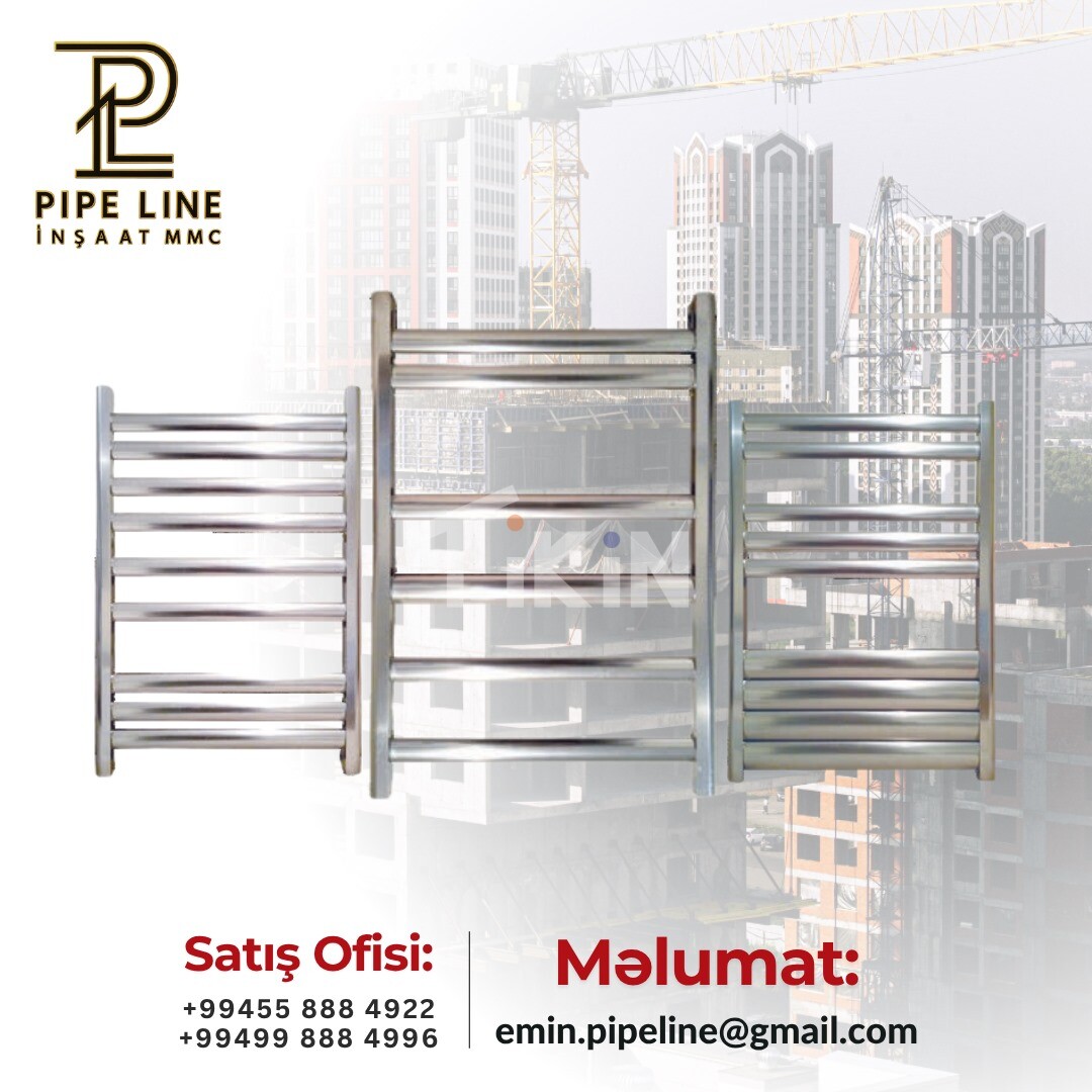 KEYFİYYƏTLİ İSTİLİK HƏLLƏRİ PIpe Line İnşaat MMC sizə yüksək keyfiyyətli paslanmayan poladdan hazırlanmış dəsmal qurudan radiatorlar və müasir istilik sistemləri təqdim edir. Bu məhsullar hamam otağında həm rahatlıq yaradır, həm də məkanın daha tez və bərabər şəkildə isinməsinə kömək edir. MƏHSULUN ÜSTÜNLÜKLƏRi • Paslanmayan və keyfiyyətli material ; • Yüksək istilik ötürmə qabiliyyəti ; • Müasir və estetik dizayn ; • Enerjiyə qənaət ; • Mənzil və obyektlər üçün uyğun. Şirkətimiz istilik sistemləri üçün keyfiyyətli məhsulların satışını həyata keçirir. Müştərilərimizə ehtiyaclarına uyğun məhsul seçimi üçün kömək edir və sərfəli təkliflər təqdim edirik. Məqsədimiz sizə davamlı və etibarlı istilik həlləri təqdim etməkdir. Əlaqə: +99455 888 49 22 +99499 888 49 96 +99455 888 59 96