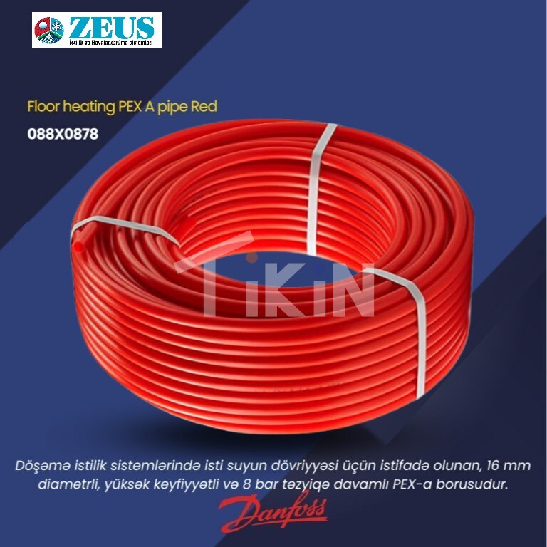 Santexnika Boru Pex A 16x2 oksigen Danfoss (qırmızı)