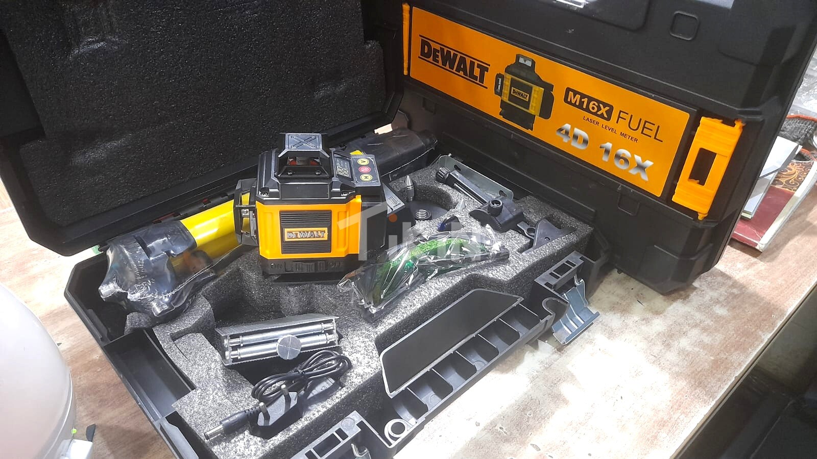 Dewalt firmasının yaşıl işıqlı lazer urovenidir. Yüzlük ölçən aparatdıır.Model 16 xəttli, 4d-dir. Hər tərəfə vurur. Həm polda , həm tavanda istifadə etmək olur. Pola da, tavana da sıfır verir. Üzərində led ekranı var. Burada öz batareyasının həcmini göstərir. Sensordur. Üzərində pultu var. Uzaq məsafədən də idarə etmək olur. Komplektində panel ayağı, 3 ayağı, böyük ayağı, 2 ədəd litium ion daşı, adapteri, eynəyi var. Bir sözlə istifadəsi komplektində hər bir detalı var. 16 m məsafədə 32 diametrdə istifadə etmək olar. Düzlüyü 16 m- də 0,2 mm-dir. Yeni, keyfiyyətli və zavod istehsalıdır. Başqa çeşidlər də var: ucuz və bahalı. Rayonlara və şəhər daxili çatdırılma xidməti də var . Sifarişləriniz üçün əlaqə saxlayın. Tel : 051/996-96-60.-3
