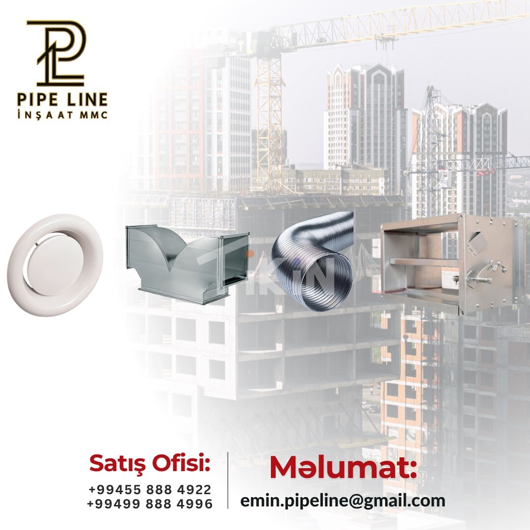 Tikinti və sənaye obyektləri üçün müasir havalandırma və ventilyasiya sistemlərinin satışı ilə xidmətinizdəyik. Şirkətimiz keyfiyyətli materiallardan istifadə edərək layihələr üçün etibarlı və uzun müddətli həllər təqdim edir. İstehsal və satış məhsullarımız: 🔹 Hava kanalları ; 🔹 Spiral borular ; 🔹 Ventilyasiya aksesuarları ; 🔹 Müxtəlif ölçü və layihələrə uyğun ventilyasiya sistemləri. Məqsədimiz müştərilərimizə keyfiyyətli məhsul, operativ xidmət və sərfəli qiymət təqdim etməkdir. Pipe Line İnşaat tikinti və sənaye sahəsində olan layihələr üçün ən uyğun havalandırma həllərini təqdim edir. Ətraflı məlumat və sifariş üçün bizimlə əlaqə saxlayın. 📞 Əlaqə: +99455 888 49 22 +99499 888 49 96 +99455 888 59 96-3