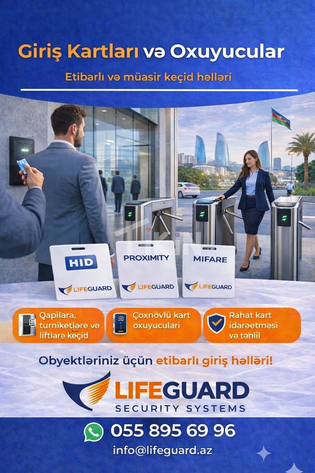 Proximity kartlar müasir təhlükəsizlik sistemlərinin ayrılmaz hissəsidir. Bu kartlar obyektlərə təhlükəsiz, sürətli və kontaktsız giriş imkanı yaradır və giriş-çıxış prosesini tam nəzarət altında saxlamağa kömək edir. Proximity Kart nədir? Proximity kart — xüsusi oxuyucuya yaxınlaşdırıldıqda tanınan elektron identifikasiya kartıdır. Fiziki təmas tələb etmədən işlədiyi üçün həm rahat, həm də uzunömüddətlidir. İstifadə Sahələri: Ofislər və biznes mərkəzləri, Dövlət və özəl müəssisələr, Banklar və maliyyə qurumları, Təhsil müəssisələri, Otellər və yaşayış kompleksləri, Zavod və istehsalat sahələri Proximity Kartların Üstünlükləri Kontaktsız və sürətli istifadə Yüksək təhlükəsizlik səviyyəsi Asan proqramlaşdırma və idarəetmə Saxtalaşdırmaya qarşı qorunma